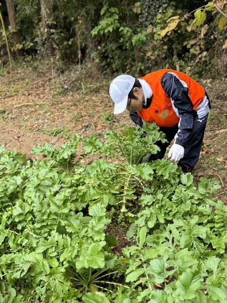 参加者さんは全員よいおやさいのビブスを着て作業します。参加メンバーがわかる上に道路などからも活動していることがわかり、一体感が生まれます。