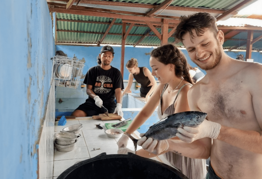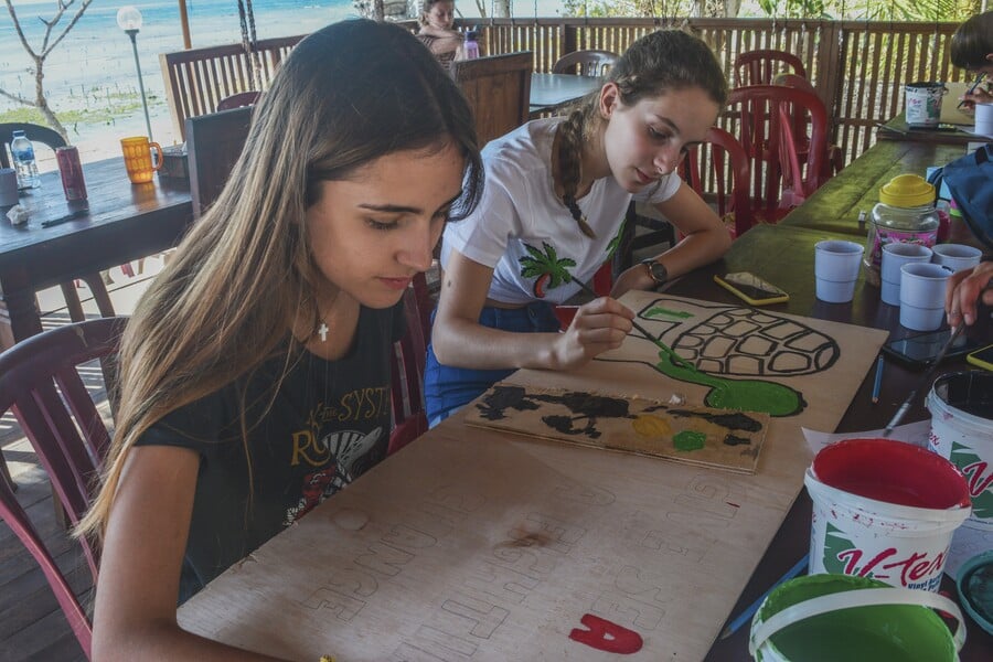朝食後、ウミガメへの餌やりを行い、ウミガメを海に放流する貴重な体験をすることができます(この体験は、プログラムを今週で終了する参加者のみ対象です)。