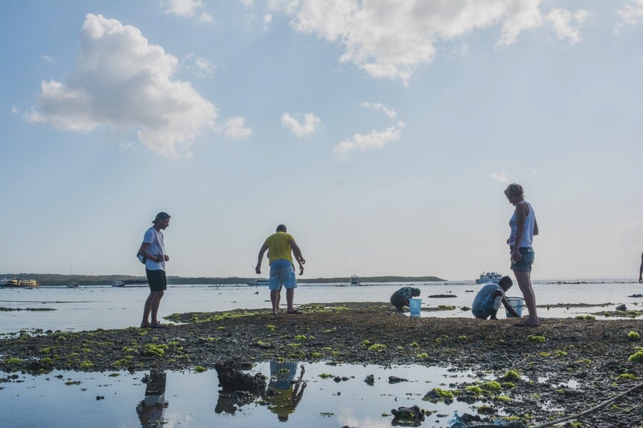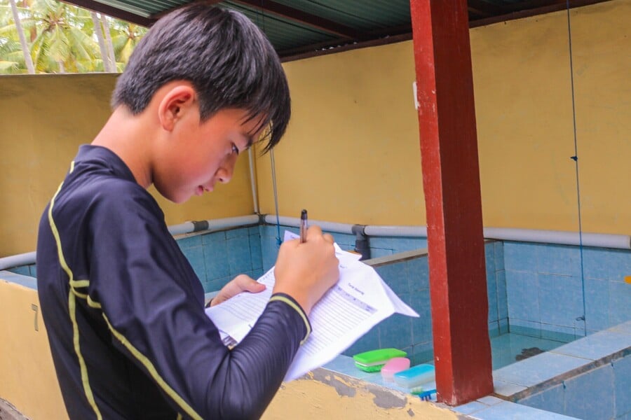 朝食後、ウミガメ保護に関連する活動を継続します。餌やりやタンクの清掃、海藻の収集を行います。