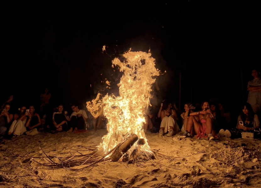 木曜日の夜には、ビーチでの焚き火を囲んで歓迎会&送別会が行われます。新しく来た参加者との交流や、去っていく仲間との別れの時間を楽しむ特別な夜です。