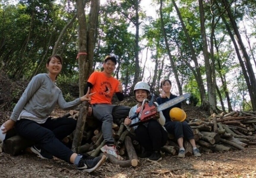 里山を「守る」活動ではなく、自らの手で「育てる」活動をするという想いのもと、雑木林の間伐、椎茸の栽培や散策道整備等を展開。現在は障がいを持った人たちが最低賃金を受給しながら働ける「A型作業所」も開設し、里山×福祉の事業を行う。ワークキャンプ中は、機械や刃物を使うワークもあるため、安全対策指針を作り、安全で楽しい森林ボランティア活動を目指す。ワークキャンプ活動中は、間伐した木々を使って風呂場のお湯を沸かす等、限られた備品や予算を、集まったメンバーたちで工夫しながら取り組み、里山ライフを実践していく。