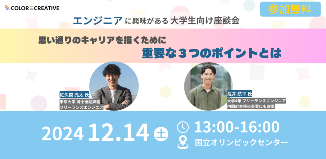 対象 :エンジニアに関心がある大学生、大学院生、短期大学生、専門学生 参加する人の年齢層について
