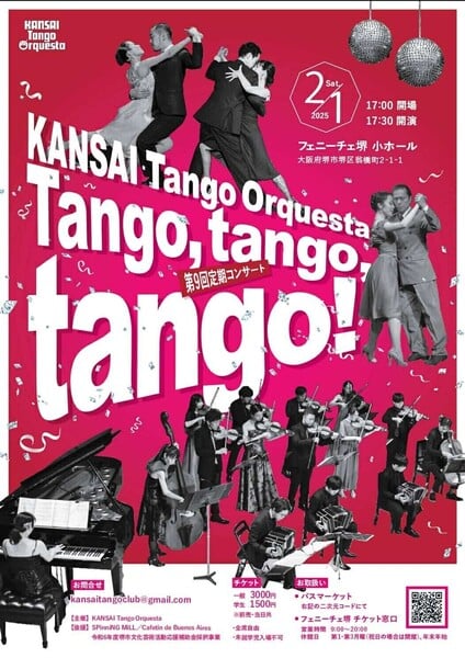 2025/2/1に大阪府堺市のフェニーチェ堺で開催される、国内で数少ないアルゼンチンタンゴコンサートの入場整理・受付・フライヤー挟み込みのボランティアの方を募集します!