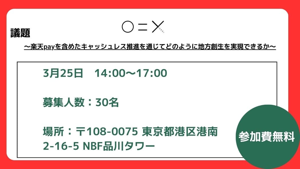 今回のイベントは、「楽天ペイ」、「楽天ポイントカード」、「楽天Edy」で有名な楽天ペイメント株式会社様にご協賛いただいての実施となります!