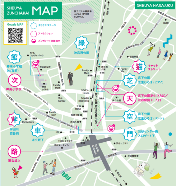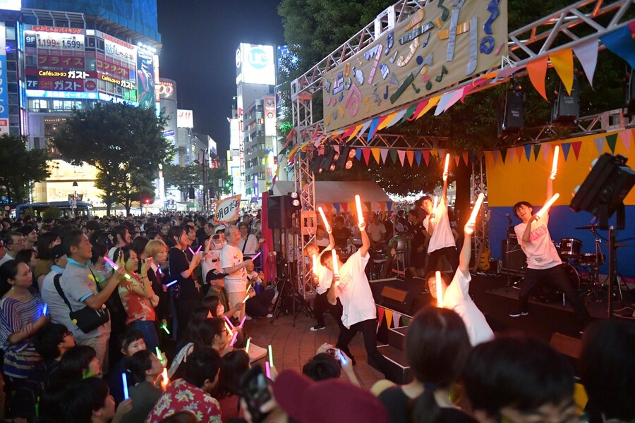 ハチ公前や、センター街や、宇田川交番前、神宮前交差点など、渋谷のいたるところにステージをつくったり、