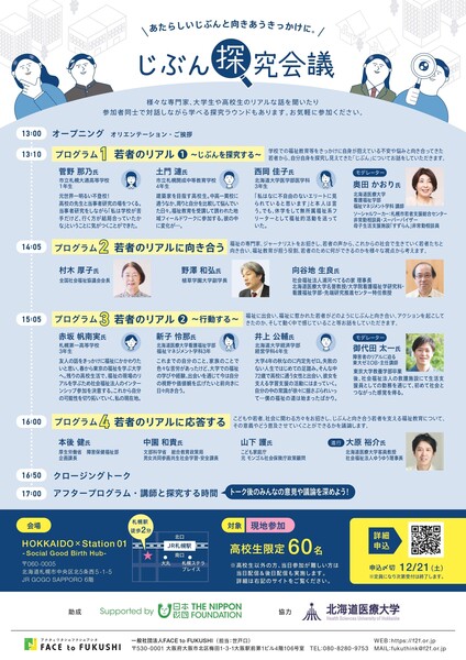 自分について福祉について、高校生や大学生が語り、大人も応答する。「じぶん探究会議」を、開催します。