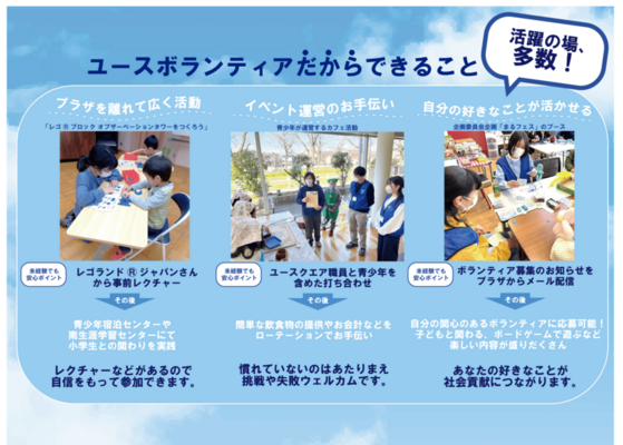 当ページでは『ユースボランティア』の募集、ボランタリーなイベント・講座の広報をメインに発信しています。