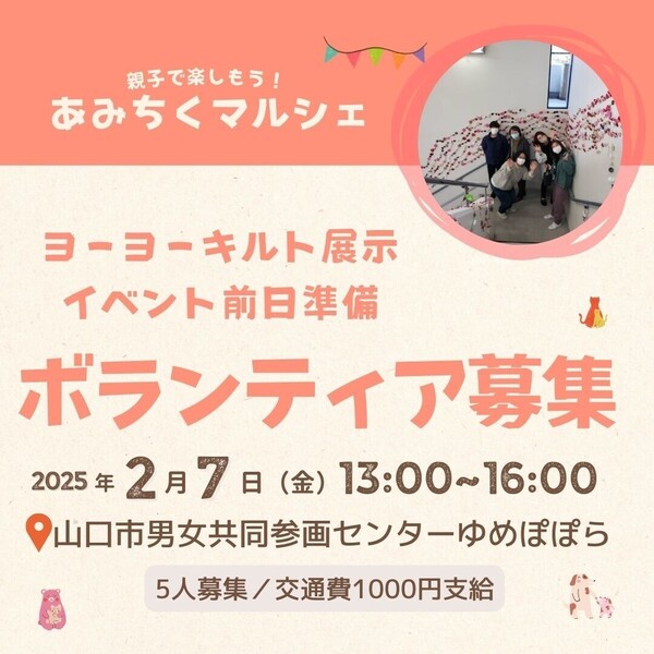 - 山口市 あみちくマルシェヨーヨーキルト展示前日準備ボランティア募集