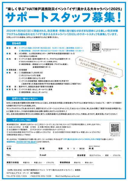 - HAT神戸連携防災イベント「イザ!美かえる大キャラバン!2025」スタッフ募集!