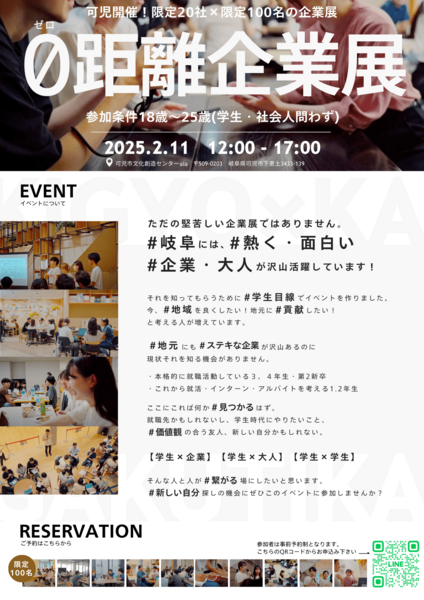 岐阜県可児市で18歳~25歳の企業展を開催することになりました。