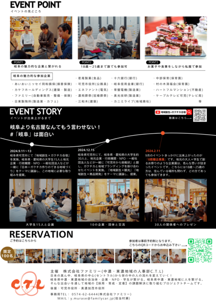 岐阜には熱く・面白い活躍している企業・大人が沢山います!それを知ってもらうために地元学生とイベントを作りました。
