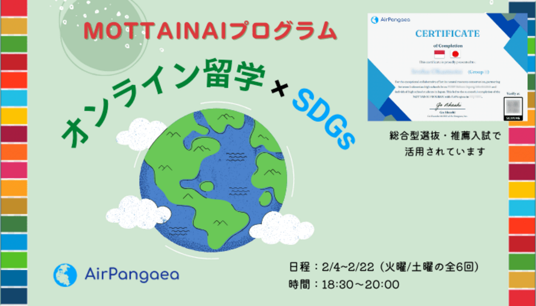 - 【満員御礼】2/4〜中高生募集:オンライン留学×SDGs