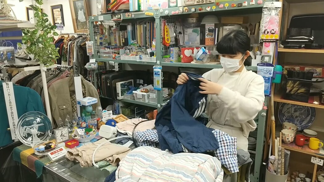 ①衣類や雑貨などの寄付品の検品、清掃、商品化