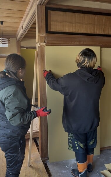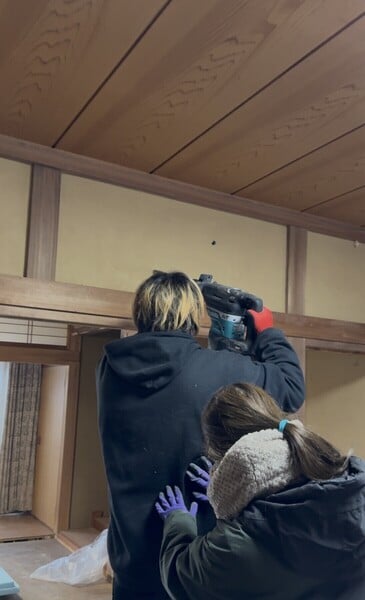- 現在改修中の古民家を活用した新しいゲストハウスのDIY作業