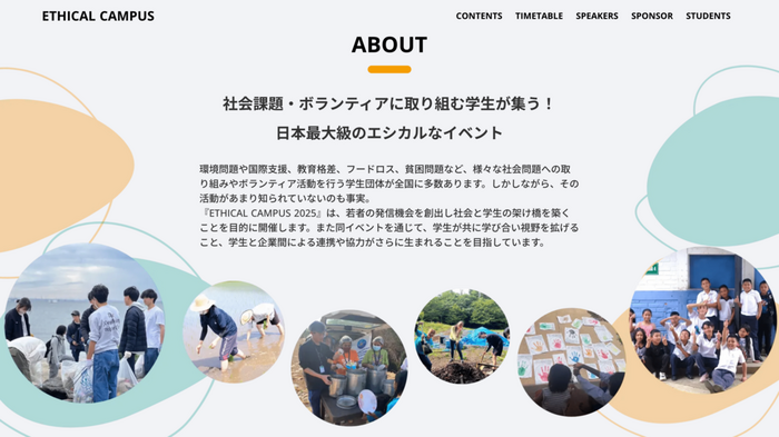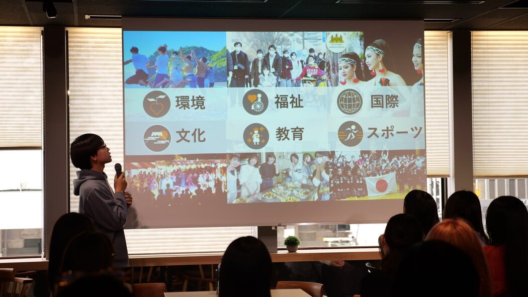 イベント内容は、国際支援や環境問題など、様々な社会課題ごとに、勉強会やワークショップなどを開催しています。また屋外では海岸清掃なども行っています。