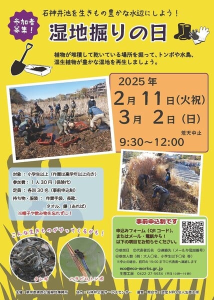 土を掘って、トンボや水鳥・湿生植物が豊かな湿地を再生しよう!