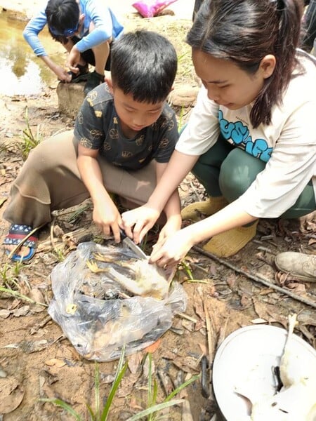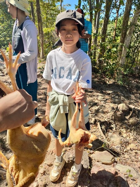 ・川辺でのサバイバルクッキング(鶏を捌いたり、竹でご飯を炊いたり)