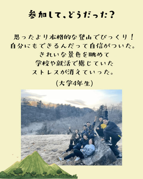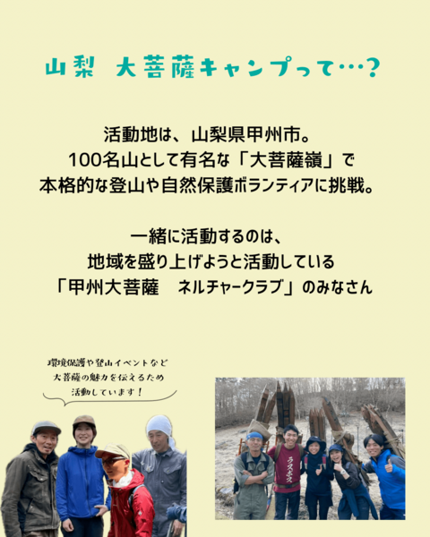 - 学生・社会人歓迎!自然溢れる山梨で登山×ボランティア!