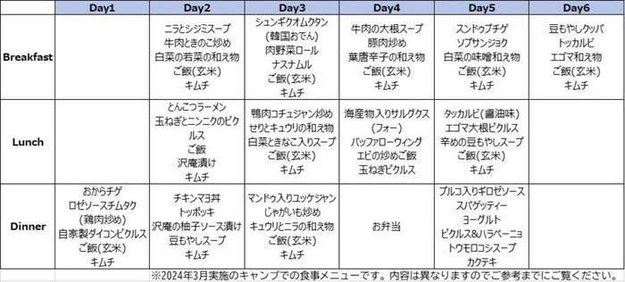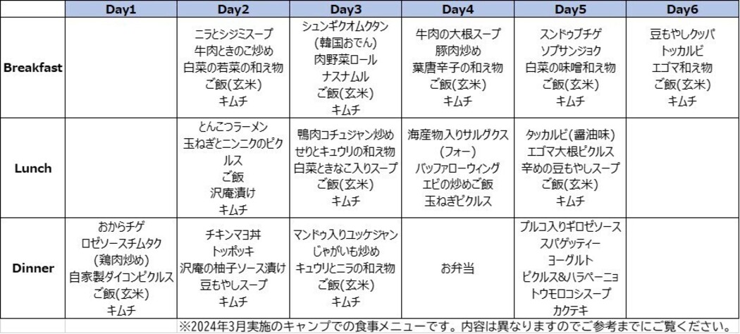 Q8.子どもの食事はどのようなものですか A8.プログラム期間は日本人に合うような食事をご提供予定です。ご参考までに、下記メニュー例をご覧ください。