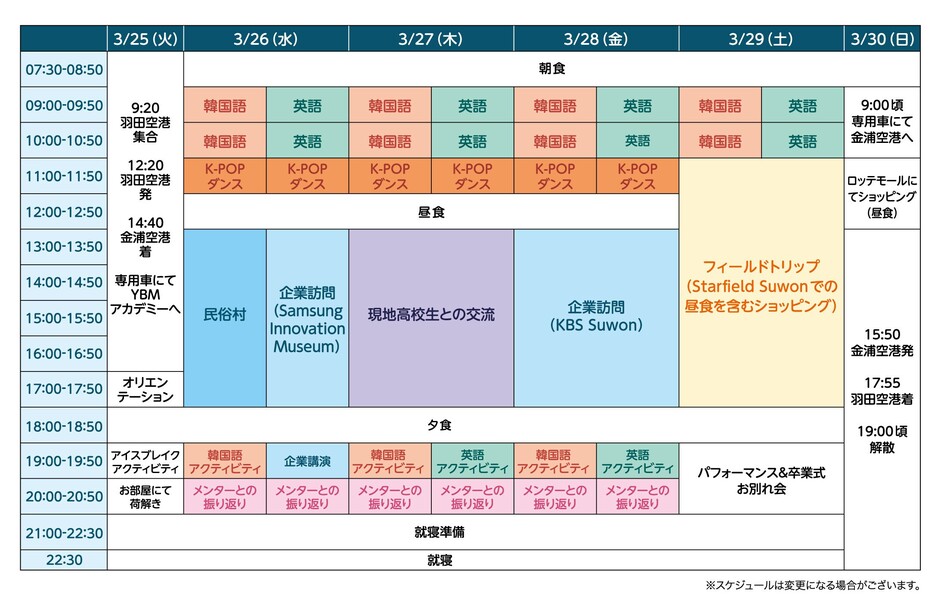 【オンライン説明会開始中、お気軽にどうぞ!】午前は「英語」または「韓国語」のレッスン、プロ指導の「K-POPダンス」を楽しみ、午後は現地の高校生との交流や企業訪問、民俗村巡りで韓国カルチャーを満喫!