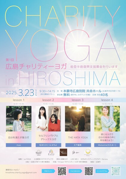 3月23日(日)に寺町の本願寺広島別院にて、能登半島支援のためのチャリティーヨガを開催します!