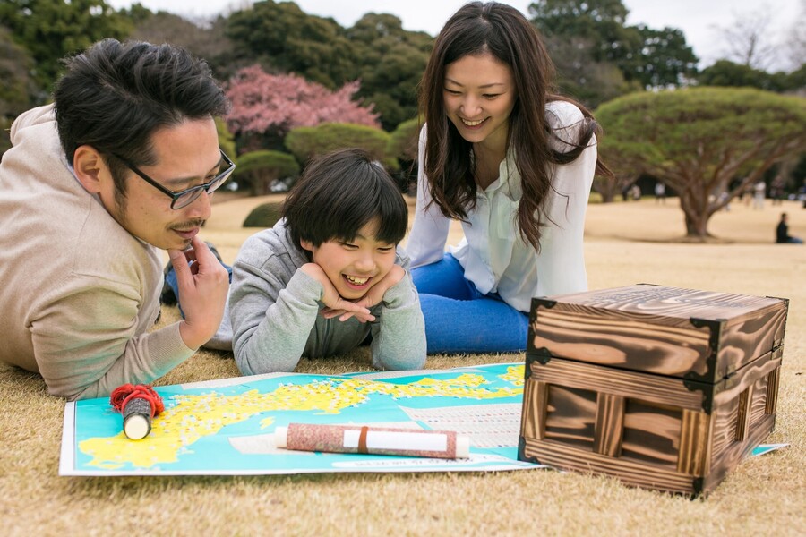 宝の地図を読み解き、実際に地域内に隠された宝箱を探す、エンターテイメント要素の強い「回遊型」の遊びです。