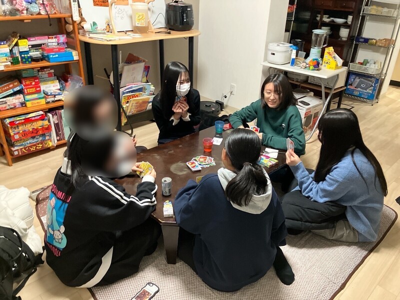 こどもたちは家の中でそれぞれのやりたいことをして過ごします。ゲームをしたりのんびりおしゃべりしたり、近くの公園に遊びに行ったり…。過ごし方は様々です。ボランティアさんにはこどもたちのやりたいことに寄り添って過ごしていただいています。