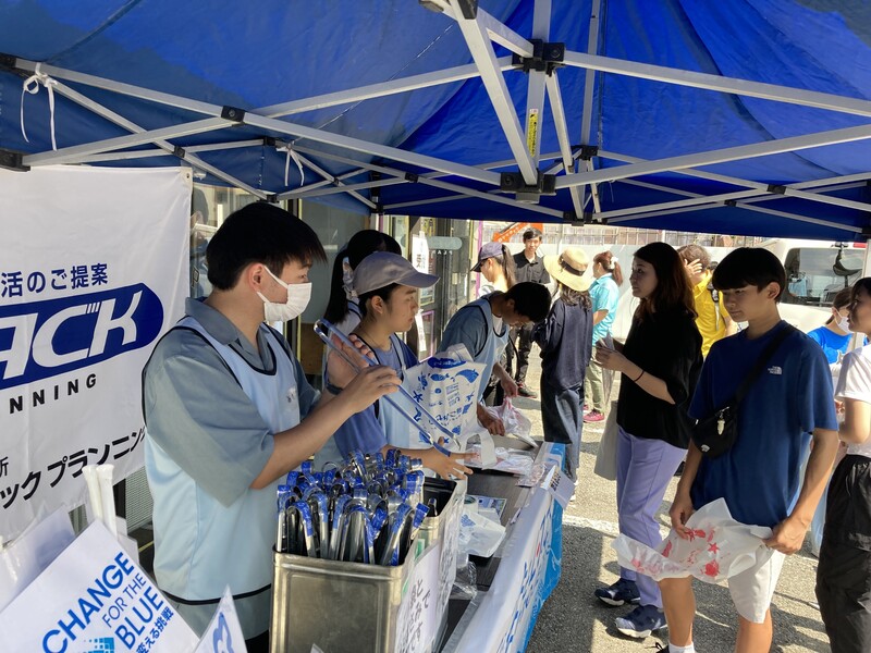 ⑤本部運営(清掃ボランティアが出発した後、とめきちと集合場所の近隣清掃・清掃ボランティアが戻ったら、トング受取、お茶をお渡し)