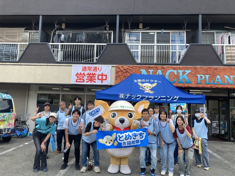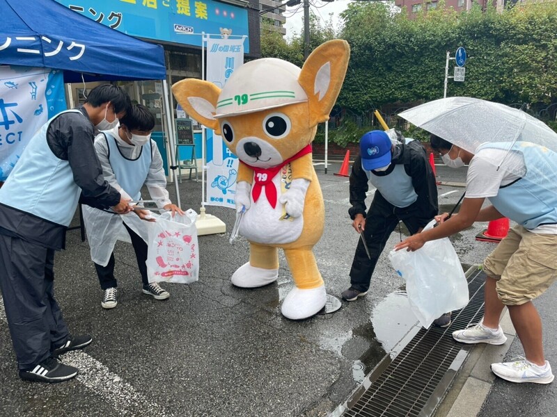 ③「とめきちお掃除隊」の象徴として参加する「犬の着ぐるみ:とめきち」のサポート