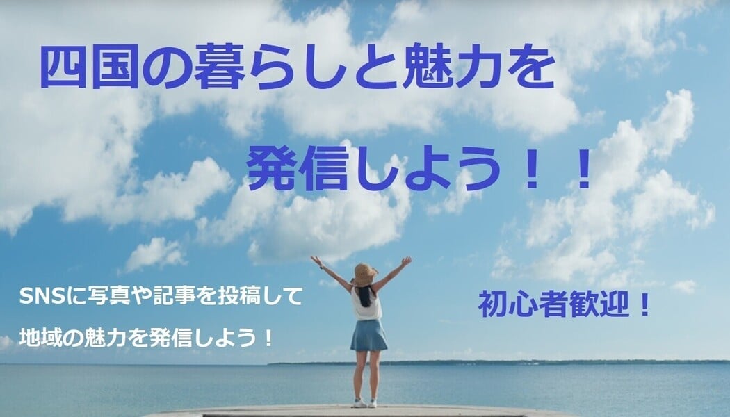地域の魅力を発信するSNSサイトに写真や記事を投稿して四国の魅力を発信しよう!地域の暮らしや観光、グルメなどの情報を伝えることで、地域のファンをつくり、町おこしや地方活性化に繋げていきます。