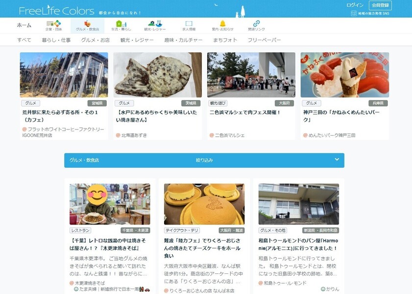 『フリーライフ・カラーズ』は、地域の魅力や自由で個性的なライフスタイルを広く発信するためのSNSサイト。