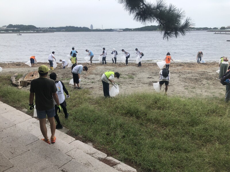 穏やかな浜辺で皆と清掃活動!浜も心もスッキリします!