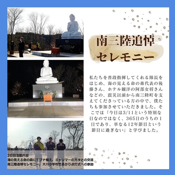 - 【2025.3.11】南三陸東日本大震災海の見える命の森追悼セレモニー参加者募集