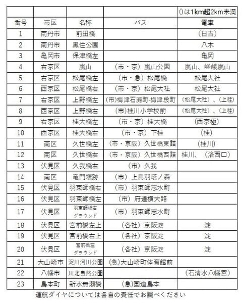 桂川流域に20ヵ所以上の集合場所が設定されます。集合場所はHPの地図でご確認ください。 |
