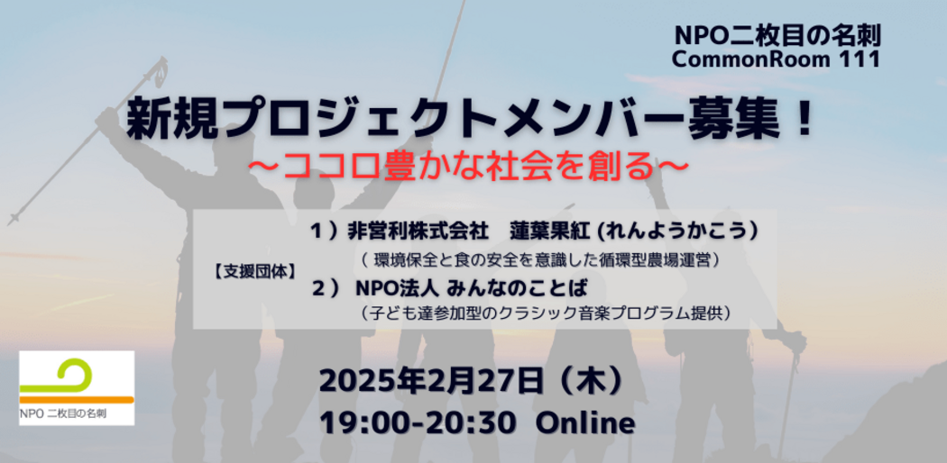 - 会社と家の往復を卒業!2/27二枚目の名刺_新規プロジェクトメンバー募集説明会!