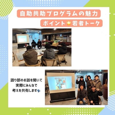 「自助ワークショップ」というプログラムでは、大川伝承の会の共同代表である佐藤敏郎様から被災の経験・教訓をお話いただき、災害に備えることについて考え、学ぶことができる。更に当時幼稚園から高校生だった子ども達が14年経ってあの時に伝えられなかったことなど赤裸々に伝えてもらえる若者トークも同時開催される。