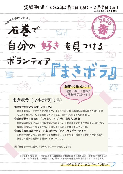 ・石巻で自分の好きを見つけるボランティア「まきボラ」