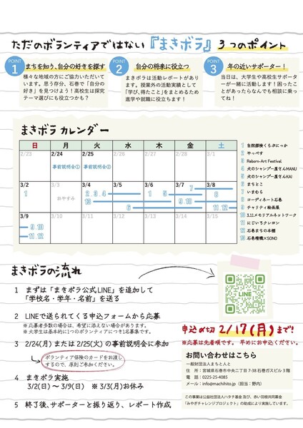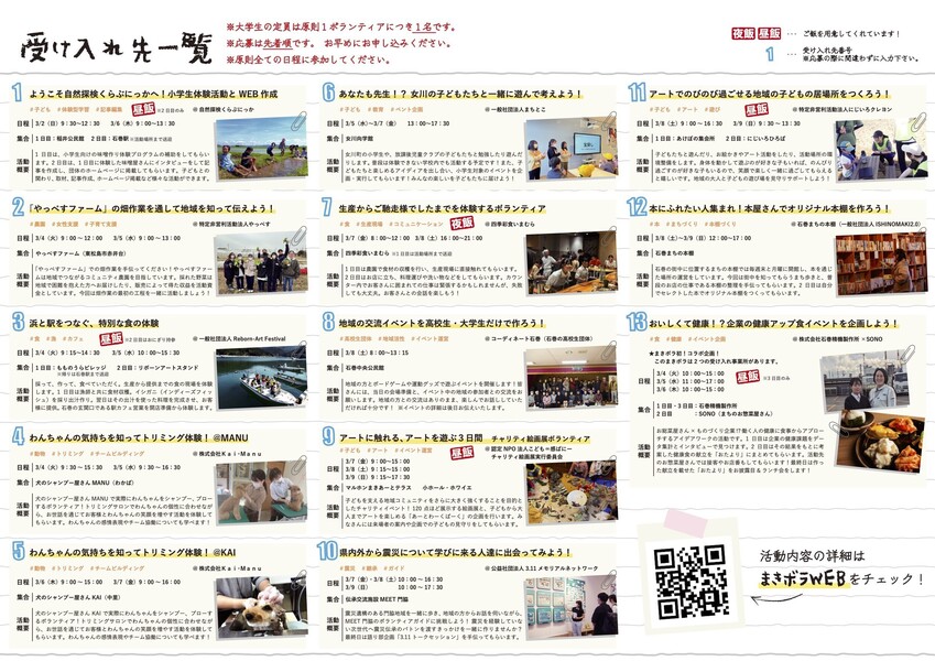 各ボランティアの詳細を知りたい方は添付画像もしくは「まきボラ」WEBページをチェック!