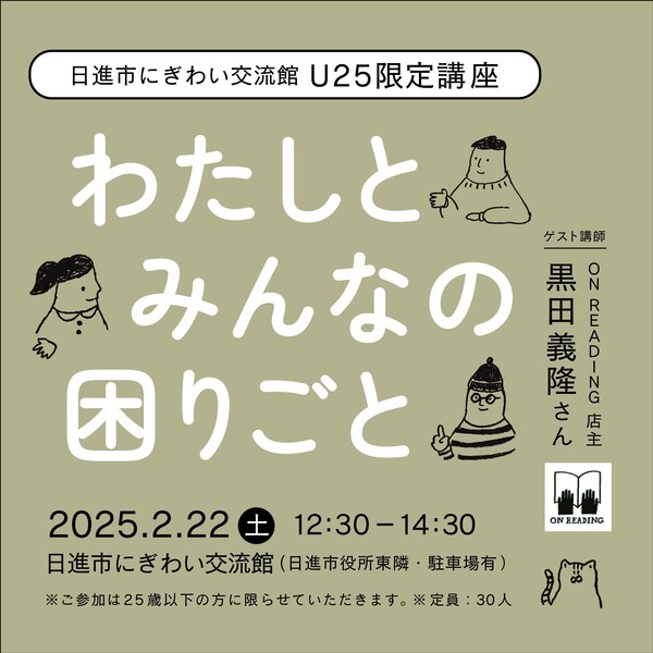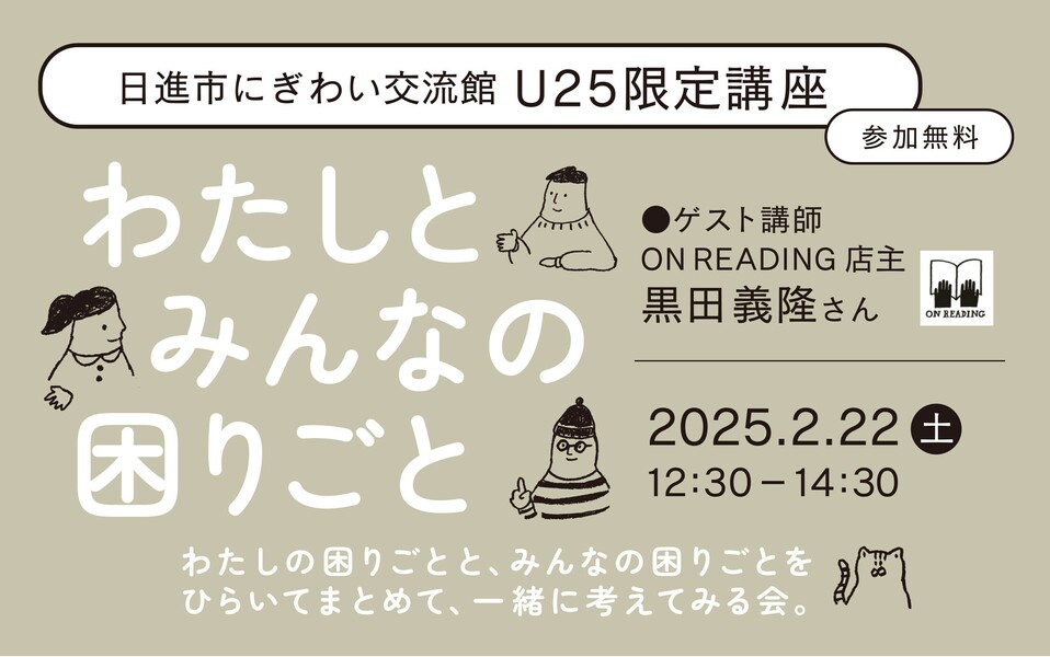 高校生・大学生の参加大歓迎! U25限定企画「わたしとみんなの困りごと」。いろんな「困りごと」を知ることで自分にできることがみつかるかも。講師は名古屋の本屋さんONREADING店主の黒田義隆さんです