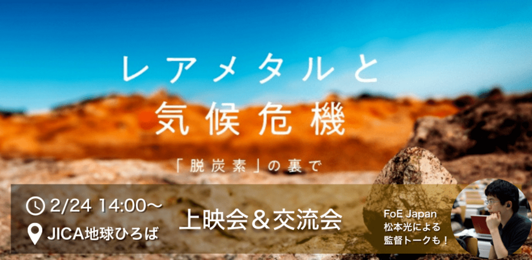 再生可能エネルギーの普及の裏で、レアメタル採掘が環境破壊や人権問題を引き起こしています。本作はその現実を取材。監督トークや交流会も!