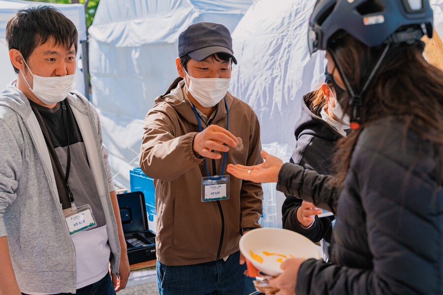 A2、貸出食器を数え、各店舗に渡したり、食器の回収やトークイベントへの参加、テントの片付けなどをしました。