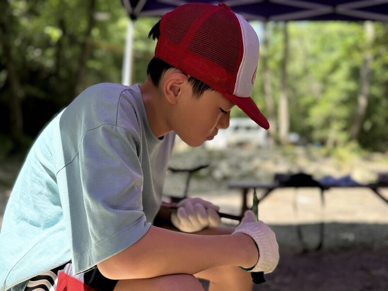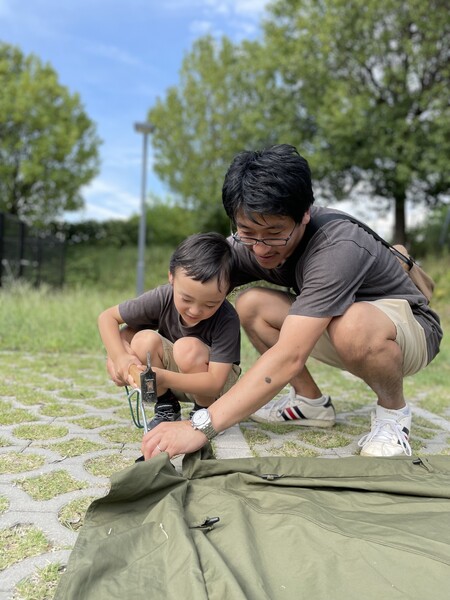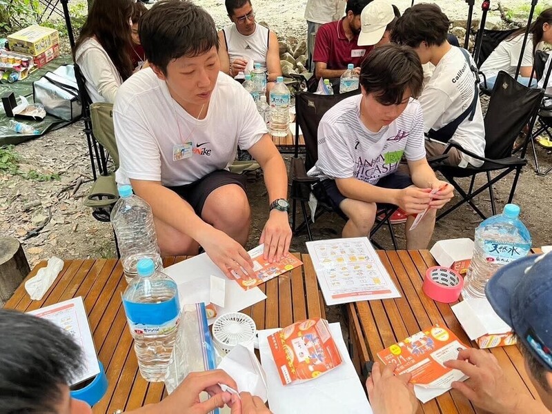 キャンプ道具を活用し、生き抜くための知恵や工夫を体験しながら楽しく学ぶ。