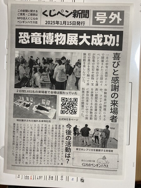 2025年の緊急企画イベントでは入場無料「令和に飛び出す恐竜博物展」を開催し1651名の来場者に想い出作りを体験してもらいました。さらに、さらに、沢山の活動を皆さんとやっていきたいです。応援よろしくお願いします。