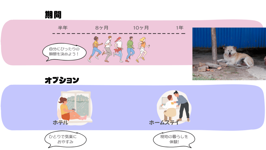 現地に渡航してからでも、ホームステイや国内旅行などに申し込むことができます。まずは現地の雰囲気に慣れてみて、お気軽にご相談ください。