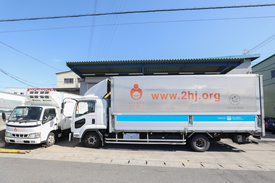 セカンドハーベスト・ジャパン(2HJ)所有の4トントラック(マニュアル車)で食品を輸送する活動です。