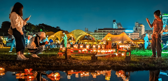私たちの活動は2011年7月に狛江市の和泉多摩川駅の多摩川河川敷でキャンドルナイトを初開催したところから始まっており、今年で15年目になります。参考までに、今まで私たちは「多摩川キャンドルナイト灯と人」「キャンドルスケープ川崎」という名前のイベントを作ってきましたので、Instagram や X などで上記の名前を検索していただければ画像がたくさん出てきますので、ぜひ眺めていただければと思います。いままでの活動としては「2000〜3000本のキャンドルを並べる」「アコースティックによる小さな音楽ライブ」「特殊スタンプラリー」「体験型アクティビティ」を主にイベント作りをしてきました。また、今まで私たちは狛江市もしくは川崎市の後援を受けてイベントを実施して参りました。