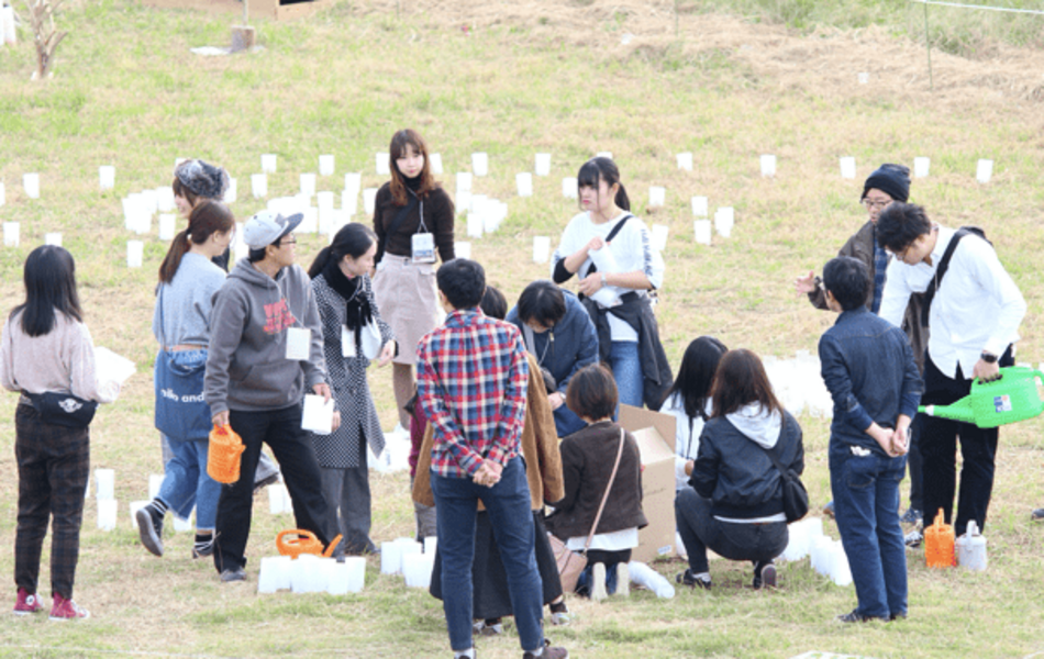 ◯5月の中旬ともなると、晴れやすい季節ですが、気温も28度とか暑い気温になる中で、朝からいそいで3000本のキャンドルを並べなければいけないの水分補給とか日焼け対策とかが大事でしたねぇ。すべて並べ終わってキャンドルが灯った広場を見たとき、すっごい達成感ですよ【2019年スタッフ参加 SIさん(男性・社会人)】