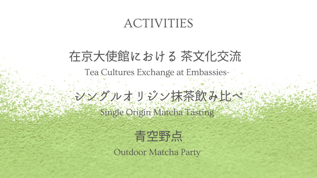 我々は『茶の湯をもっと自由に、もっと日常的に』をスローガンに大使館における茶文化交流会、シングルオリジン抹茶の飲み比べ、若年層向けお茶PRイベントの実施などを行っています!