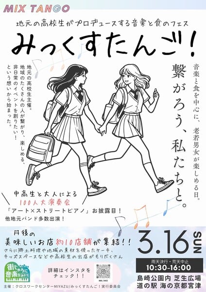 3/16 (日)に地域の高校生が音楽と食のフェス「みっくすたんご」を企画!