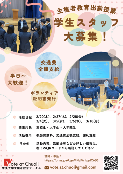 この募集の受入団体「Vote at Chuo!!」をフォローして、